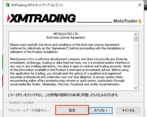 通常通りMT4のインストーラーを起動すると、このような画面が出ます